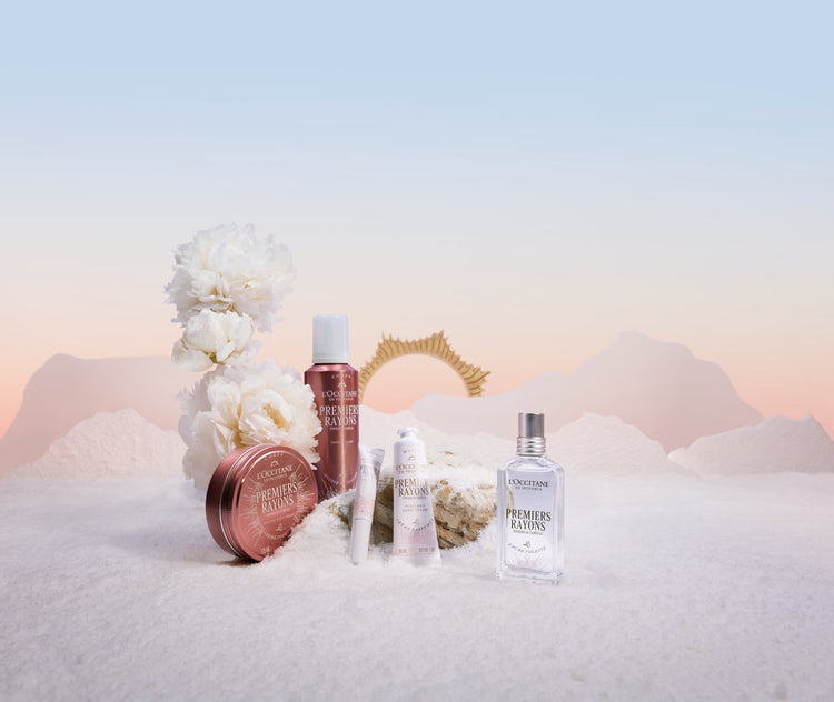 Premiers Rayons Първите слънчеви лъчи, уловени в аромат… Поглезете кожата и сетивата си с лимитираната коледна колекция Premiers Rayons - нежна като утринен полъх в Прованс. Ароматът сияе с деликатна флорална прегръдка от божур и камелия, озарена от сочния блясък на круша. Всяко нанасяне е миг на чиста наслада, като да се събудите под меката светлина на зимното утро, когато светът още е тих, а всичко е възможно.  Въздушна и пухкави текстури като ароматна бита сметана, която се разтапя върху кожата и я обвива в кадифена мекота. В сърцевината им се крие 5% органично масло от карите за дълбоко подхранване, защита и усещане за абсолютен комфорт през студените дни. Premiers Rayons превръща ежедневната грижа в емоция. В ритуал, който стопля душата. В цветна, сияйна романтика, облечена в светлина.