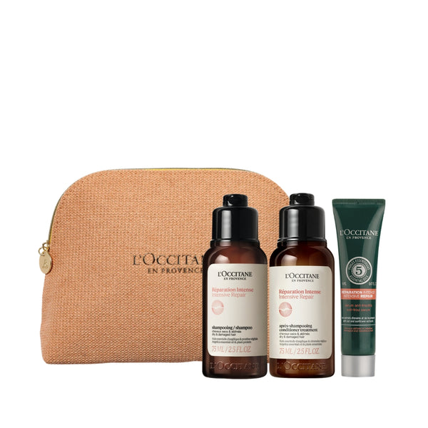 Търсите идеалния спътник за пътуване или подарък за любим човек? Този специален комплект от L’Occitane съчетава грижа за косата и тялото в удобен малък формат, който носи топлината на Прованс навсякъде с вас. Комплектът съдържа: Арома Интензивно възстановяващ Шампоан (75 мл), Арома Интензивно възстановяващ Балсам (75 мл), възстановяващ серум (14 мл) и лимитиран несесер.