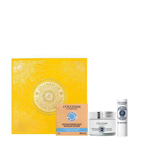 Маслото от карите е идеална съставка за красота, която се използва от векове от жените в Субсахарска Африка за подхранване и защита на кожата и косата. Маслото притежава уникални свойства да омекотява, подхранва и защитава кожата – без да оставя усещане за мазна кожа. Ако маслото от карите все още не е, то предстои да стане най-добрият приятел на тялото ви. Комплектът съдържа: богат крем за лице 50 мл, стик за устни 7.5 г и почистващ сапун за лице 75 г.