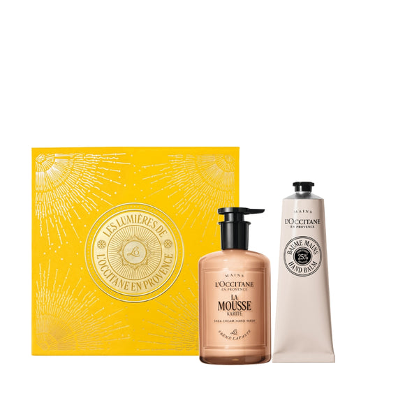 Маслото от карите е идеална съставка за красота, която се използва от векове от жените в Субсахарска Африка за подхранване и защита на кожата и косата. Маслото притежава уникални свойства да омекотява, подхранва и защитава кожата – без да оставя усещане за мазна кожа. Ако маслото от карите все още не е, то предстои да стане най-добрият приятел на тялото ви. Комплектът съдържа: интензивен балсам за ръце 150 мл, почистващ мус за ръце 350 мл, в премиум стъклена опаковка.