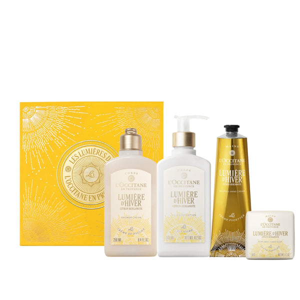 Lumière d’Hiver - свеж и ободряващ аромат с нотки на лимон и бергамот, които събуждат сетивата. Вдъхновен от обичаната линия с карите, осигурява до 24 часа дълбока хидратация и оставя върху кожата фин, деликатен аромат. Комплектът съдържа душ крем 250 мл, лосион за тяло 250 мл, ароматен сапун 50 г и крем за ръце 150 мл.