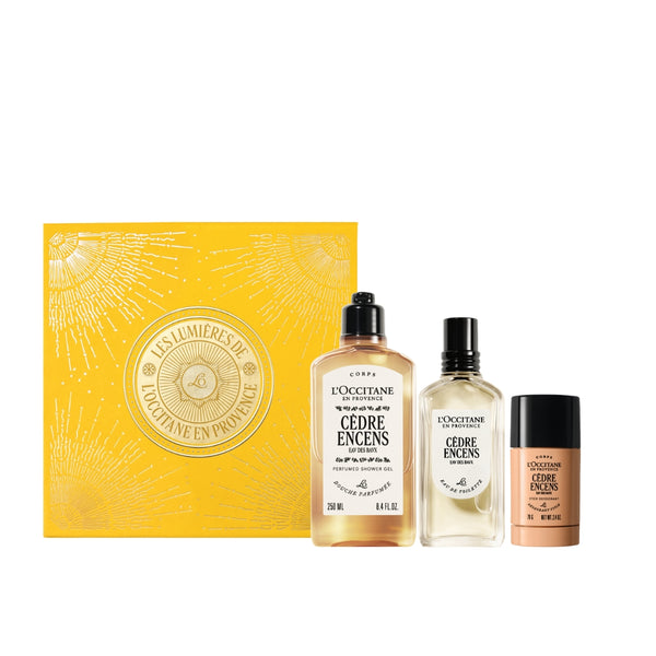 Чувствена и мистериозна комбинация от дърво и тамян. Комплектът съдържа тоалетна вода 50 мл, душ гел 250 мл, део стик 70 г и лимитирана подаръчна кутия.