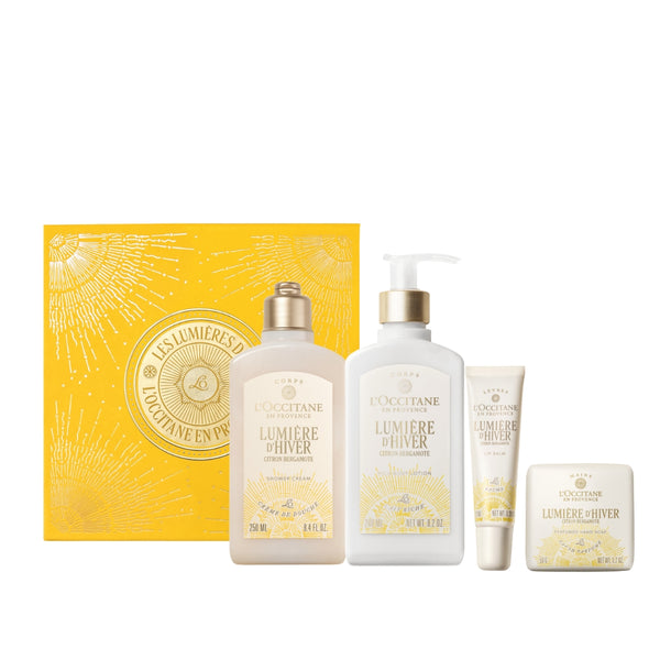 Lumière d’Hiver - свеж и ободряващ аромат с нотки на лимон и бергамот, които събуждат сетивата. Вдъхновен от обичаната линия с карите, осигурява до 24 часа дълбока хидратация и оставя върху кожата фин, деликатен аромат.  Комплектът съдържа душ крем 250 мл, лосион за тяло 250 мл, ароматен сапун 50 г и балсам за устни 12 мл.