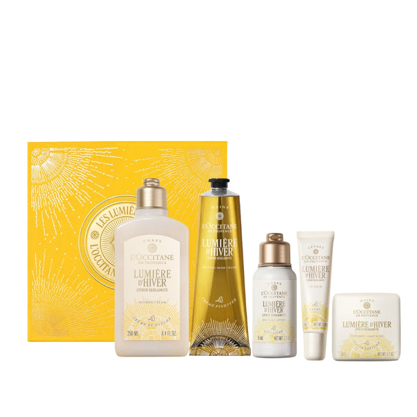 Lumière d’Hiver - свеж и ободряващ аромат с нотки на лимон и бергамот, които събуждат сетивата. Вдъхновен от обичаната линия с карите, осигурява до 24 часа дълбока хидратация и оставя върху кожата фин, деликатен аромат. Комплектът съдържа душ крем 250 мл, лосион за тяло 75 мл, ароматен сапун 50 г, крем за ръце 150 мл и балсам за устни 12 мл.