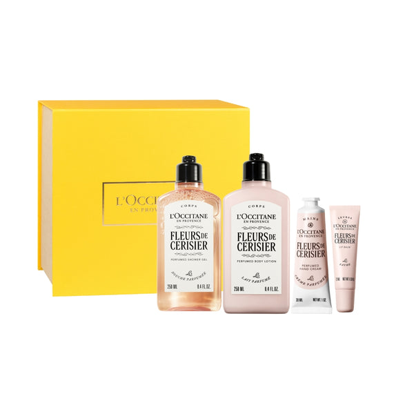 Комплектът съдържа: Душ гел 250 мл, лосион за тяло 250 мл и крем за ръце 30 мл и балсам за устни 12 мл.