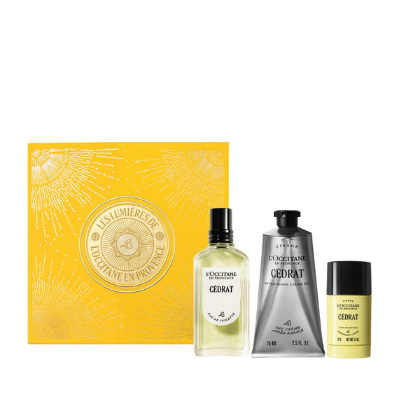 Седрата носи свеж, деликатен, цитрусов аромат - леко, но елегантно и перфектно балансирано ухание за мъже. Комплектът съдържа тоалетна вода 50 мл, крем гел за след бръснене 75 мл, стик дезодорант 70 г и лимитирана подаръчна кутия.