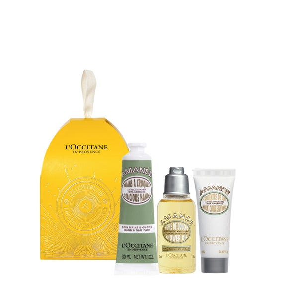 Орнамент Бадем съдържа: душ олио 35мл, млечен концентрат за тяло 20 мл и крем за ръце 30 мл. Идеален за подарък или допълнение към такъв. Нашата колекция Бадем е една от най-популярни ни серии. Бадемът е известен със способността си да подхранва кожата. L'OCCITANE използва изключителната разкрасяваща сила на бадема от южната част на Франция.