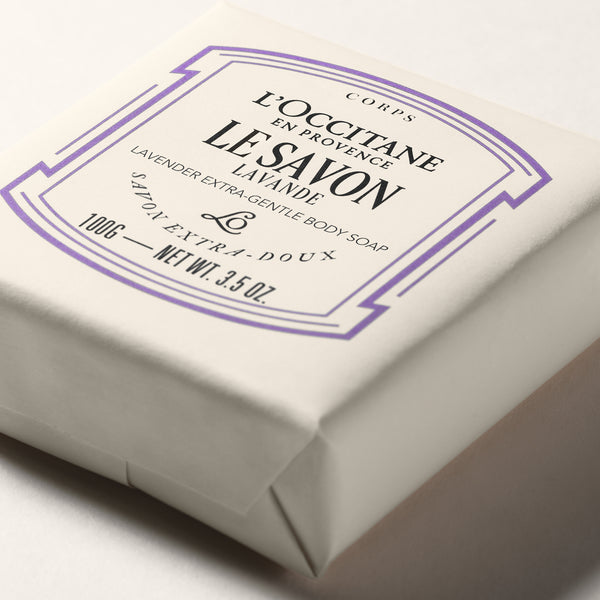 Задължителният традиционен сапун, обогатен с масло от карите и парфюмиран с лавандула.