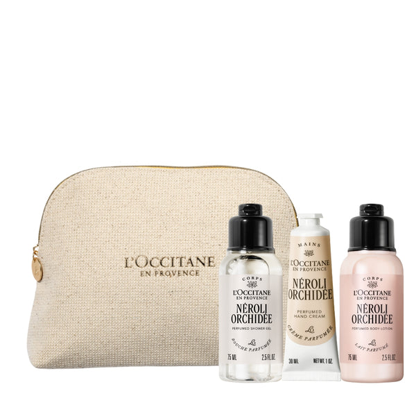 Колекцията Нероли и орхидея описва срещата на две скъпоценни съставки в Грас. Портокаловият цвят е част от пейзажа в Прованс, докато орхидеята носи уханието на далечни земи. Сега те са любовна двойка в един изключително женствен аромат. Комплектът съдържа душ гел 75 мл, лосион за тяло 75 мл, крем за ръце 30 мл и лимитиран несесер.
