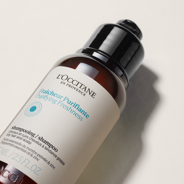 Този шампоан, формулиран без силикони, помага за възстановяването на баланса на скалпа и регулира свръх производството на себум, като същевременно осигурява хидратация на скалпа. Пречистен от остатъци и замърсявания, скалпът отново е успокоен и с чувство за комфорт. Косата изглежда безтегловна, лека и свежа, като същевременно отново има мек и блестящ вид, с трайни резултати. СКАЛПЪТ Е ПО-МАЛКО ОМАЗНЕН, КОСАТА ОСТАВА ЧИСТА ПО-ДЪЛГО* Смес от етерични масла, комбинирана с комплекс с естествен произход, известен със своите освежаващи свойства, за уникално ароматно изживяване и повишена ефикасност: - 5 етерични масла: мащерка, грейпфрут, мента, лавандула, кедър. - Мента от Прованс: известна със своите освежаващи свойства. - Оцет на растителна основа: разкрасява косата. - Теснолистна върбинка: спомага за намаляване на излишния себум и успокоява скалпа. *Изпитване за ефективност и клинично оценяване на 32 доброволци с процедурата Freshness (почистващ скраб, шампоан, балсам и есенция за скалп) в сравнение с обичайната процедура на участниците.